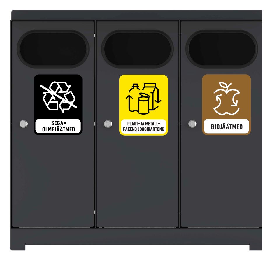 Metalli ja plastiku konkreinerisse, so ka pakendi- või segapakendi konteinerisse, võib panna plastpudelid, tetrapakendid, jogutritopsid, metallpurgid ja kaaned ning kilekotid.