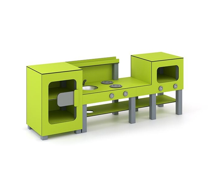 Valmistatud vastupidavast metallist ja HDPE plastikust, mudaköök on loodud kestma – nii vihmas, päikeses kui ka väikeste kokkade tormilises fantaasiamaailmas.